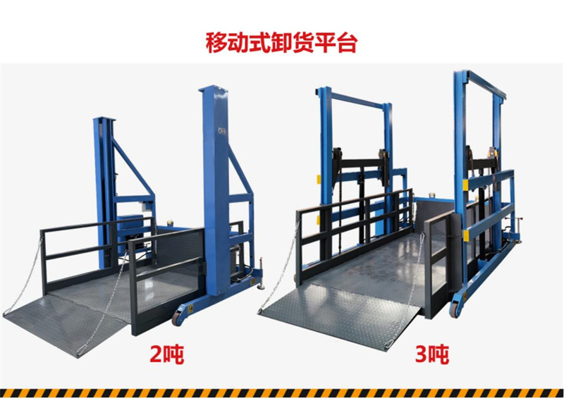 移動式卸貨平臺結構合理、性能穩定、工作效率高,可流動性是該登車橋的最大特點,主要適合用一般的集裝箱貨柜車和普通載貨車輛的貨物裝卸之用,配備了高效率、高集成化的液壓升降系統,維修方便、操作簡單、噪音低、無污染等優點,是您最理想的庫 房物流裝卸設備之